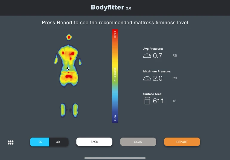 The Bodyfitter® system is an advanced technology designed to accurately measure the distribution and intensity of pressure between the body and a contact surface. Through a network of highly sensitive sensors positioned across the analysis area, Bodyfitter® delivers detailed and reliable data for comprehensive and precise evaluations.